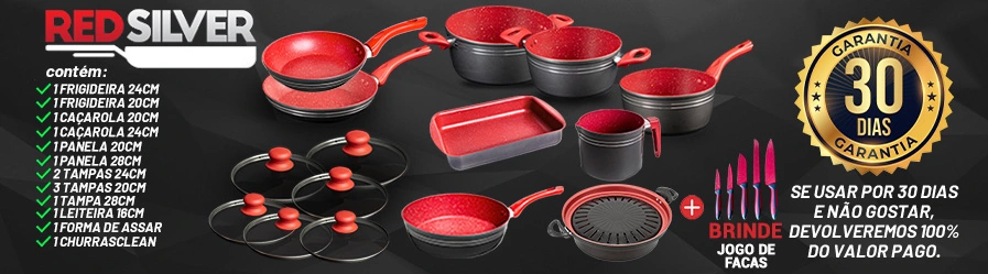 Embora os kits principais do Programa RedSilver Mulheres (como os listados acima) foquem em panelas, tampas e acessórios como formas e churrasclean – e incluam apenas e-books como bônus –, a marca oferece opções complementares com jogo de facas como brinde ou item adicional em promoções especiais.