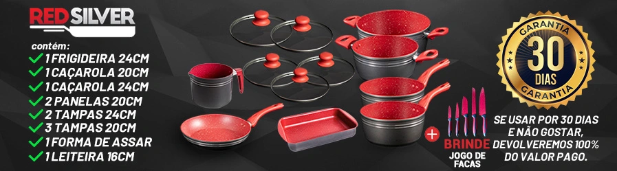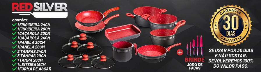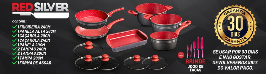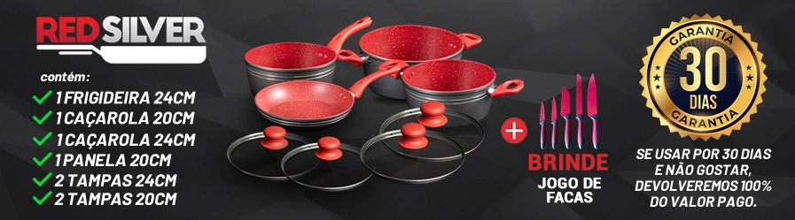 Se você viu no programa “Mulheres” uma oferta com facas de brinde, recomenda-se verificar diretamente no site redsilverpanelas.com/mulheres ou pelo WhatsApp promocional, pois as ofertas variam por campanha e podem incluir o jogo de 5 facas em aço inox como cortesia para kits selecionados.