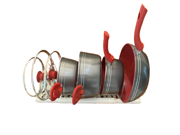 Mantenha suas panelas e tampas sempre em ordem com este prático organizador ajustável. Ideal para gavetas e bancadas, acomoda diversos tamanhos de panelas e tampas, garantindo praticidade e economia de espaço na cozinha.